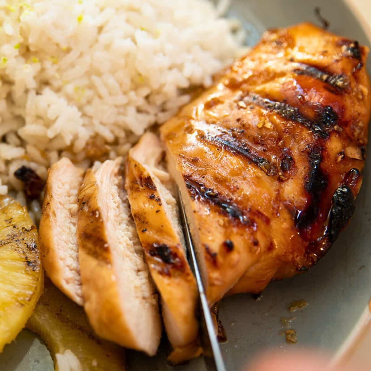 Serve: Once cooked through, remove the chicken and pineapple from the grill. Let the chicken rest for a few minutes before serving. Serve the Hawaiian chicken with the caramelized pineapple rings and a side of fluffy coconut rice!