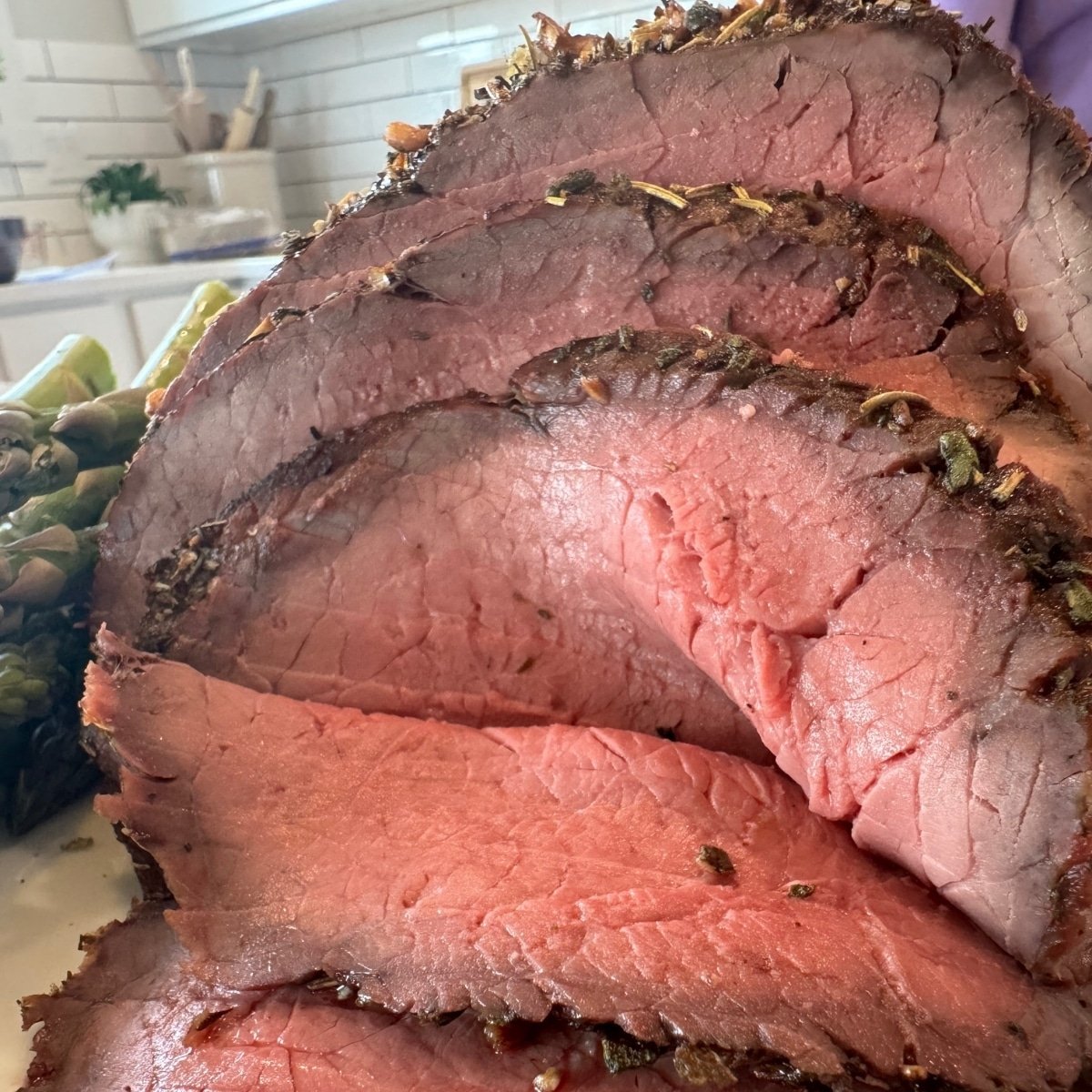 This recipe uses a 2 step approach that turns out the most tender top round roast beef: Oven Searing and Slow Roasting! There are two key reasons for this two-stage roasting approach: